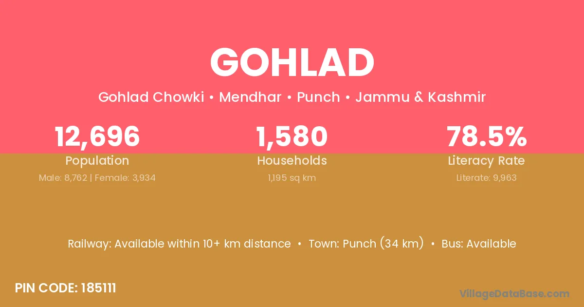 Punch (34 km) is the nearest town to Gohlad village for major economic activities and is located approximately 34 km away.