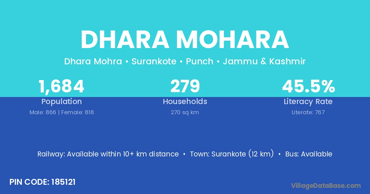 Surankote (12 km) is the nearest town to Dhara Mohara village for major economic activities and is located approximately 12 km away.