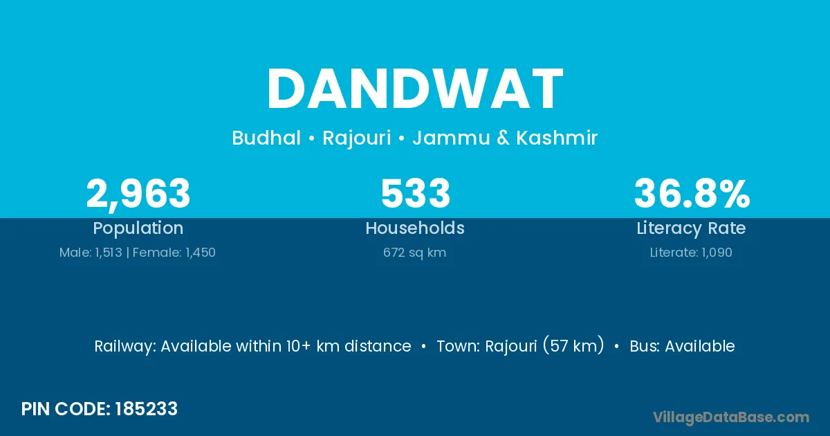 Rajouri (57 km) is the nearest town to Dandwat village for major economic activities and is located approximately 57 km away.