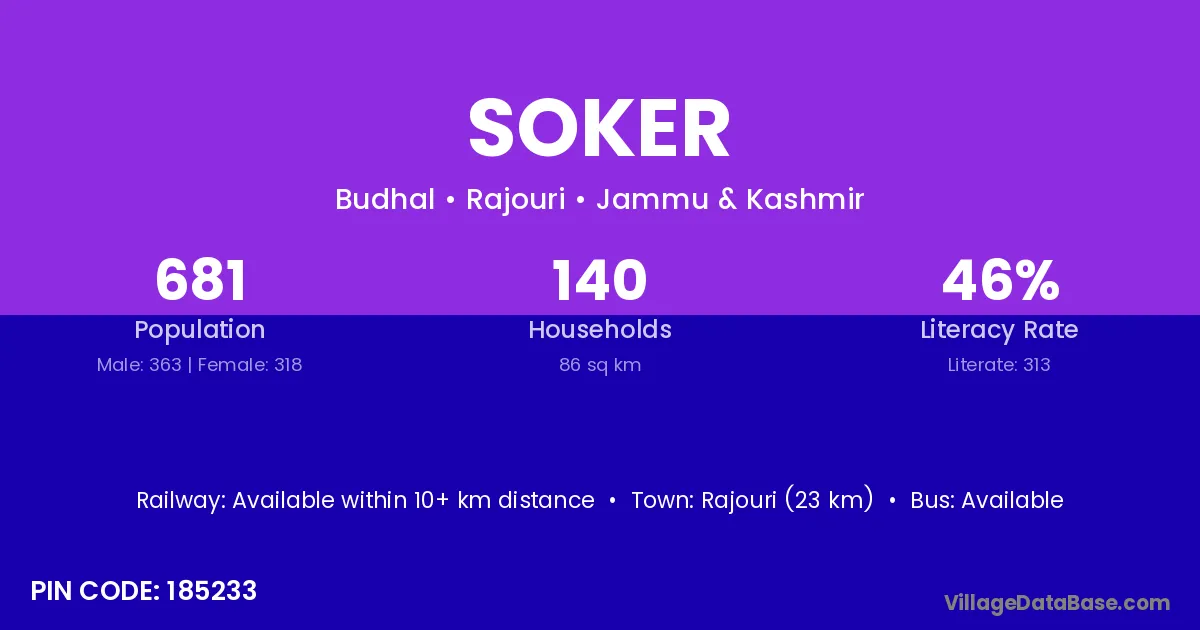 Rajouri (23 km) is the nearest town to Soker village for major economic activities and is located approximately 23 km away.