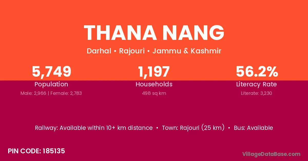Rajouri (25 km) is the nearest town to Thana Nang village for major economic activities and is located approximately 25 km away.