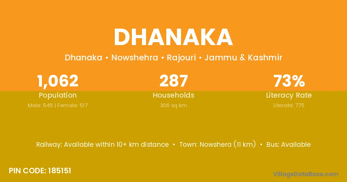 Nowshera (11 km) is the nearest town to Dhanaka village for major economic activities and is located approximately 11 km away.
