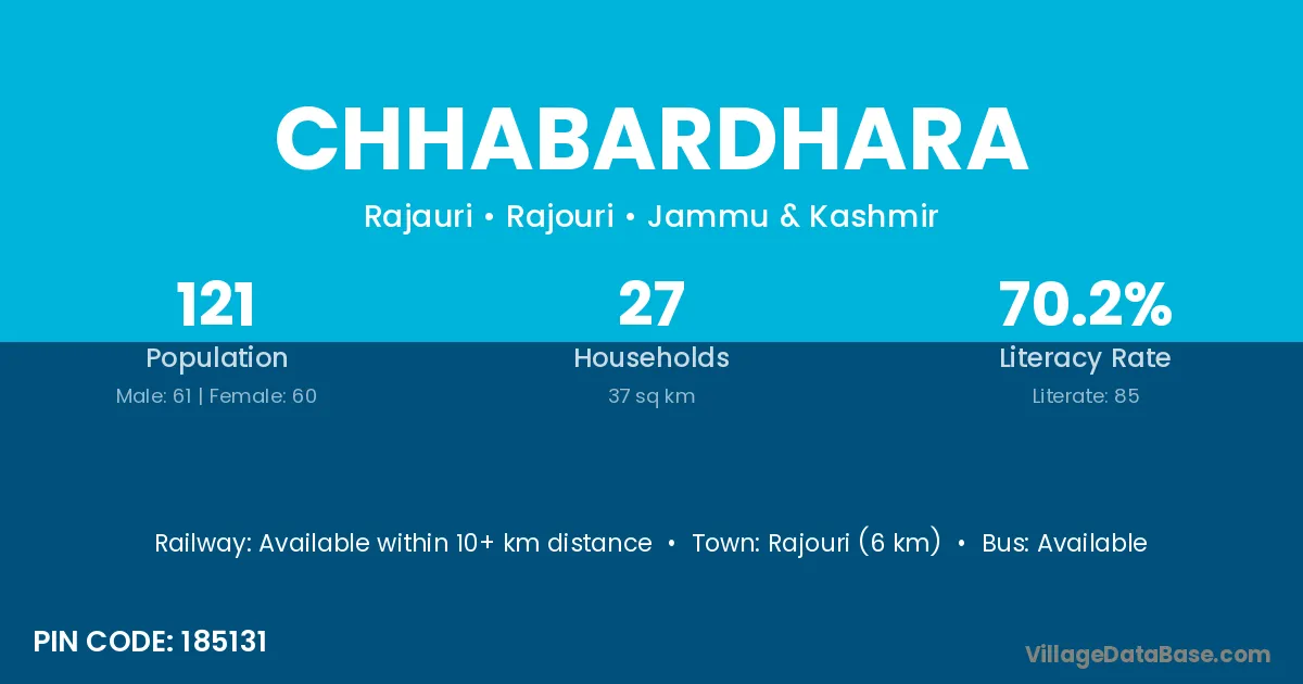Rajouri (6 km) is the nearest town to Chhabardhara village for major economic activities and is located approximately 6 km away.
