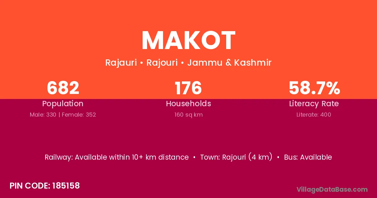 Rajouri (4 km) is the nearest town to Makot village for major economic activities and is located approximately 4 km away.