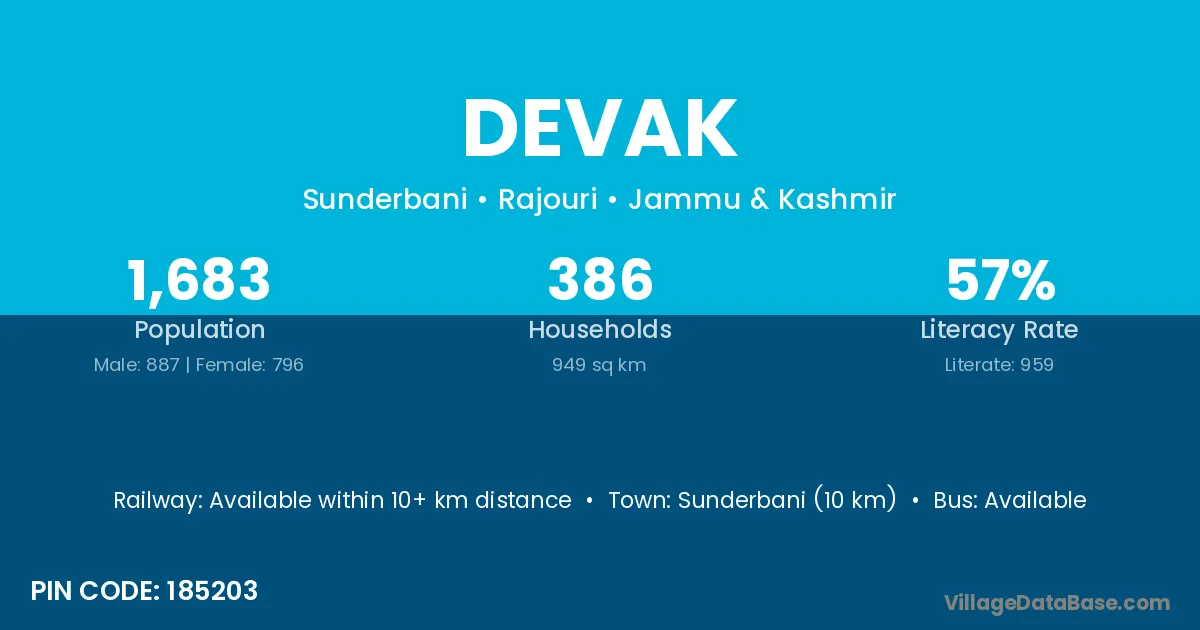 Sunderbani (10 km) is the nearest town to Devak village for major economic activities and is located approximately 10 km away.