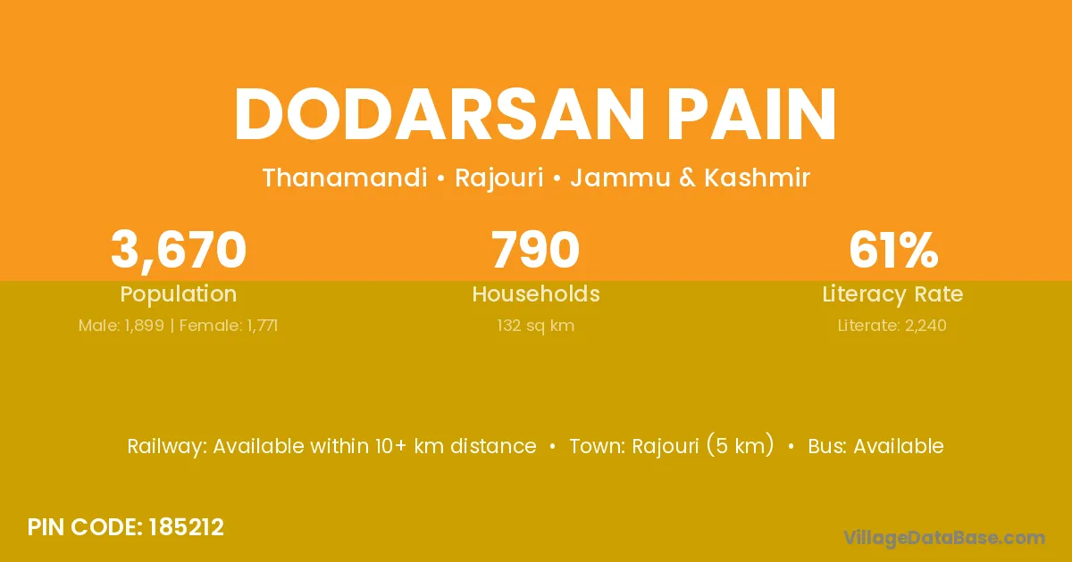 Rajouri (5 km) is the nearest town to Dodarsan Pain village for major economic activities and is located approximately 5 km away.