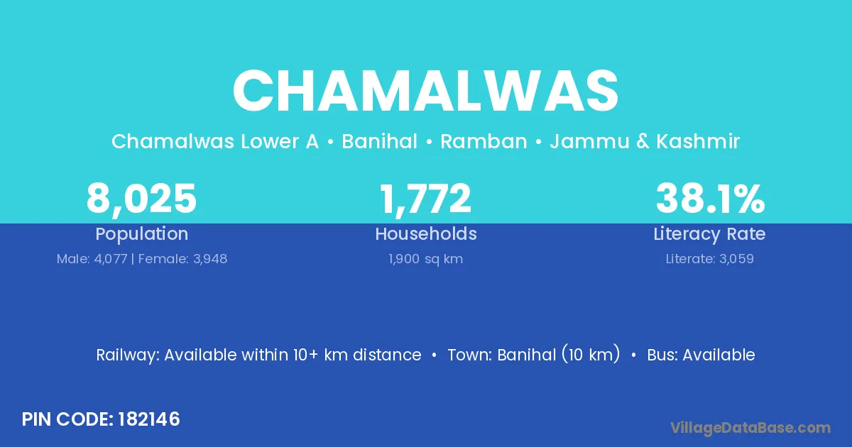 Banihal (10 km) is the nearest town to Chamalwas village for major economic activities and is located approximately 10 km away.