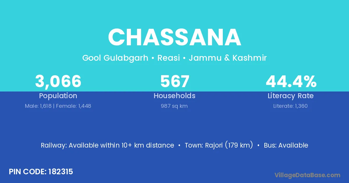 Chassana village is located in the Gool Gulabgarh Tehsil of the Reasi district in Jammu & Kashmir .