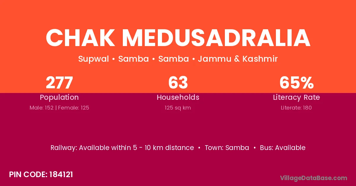 Chak Medusadralia village has a total population of 277 people, of which 152 are males and 125 are females.