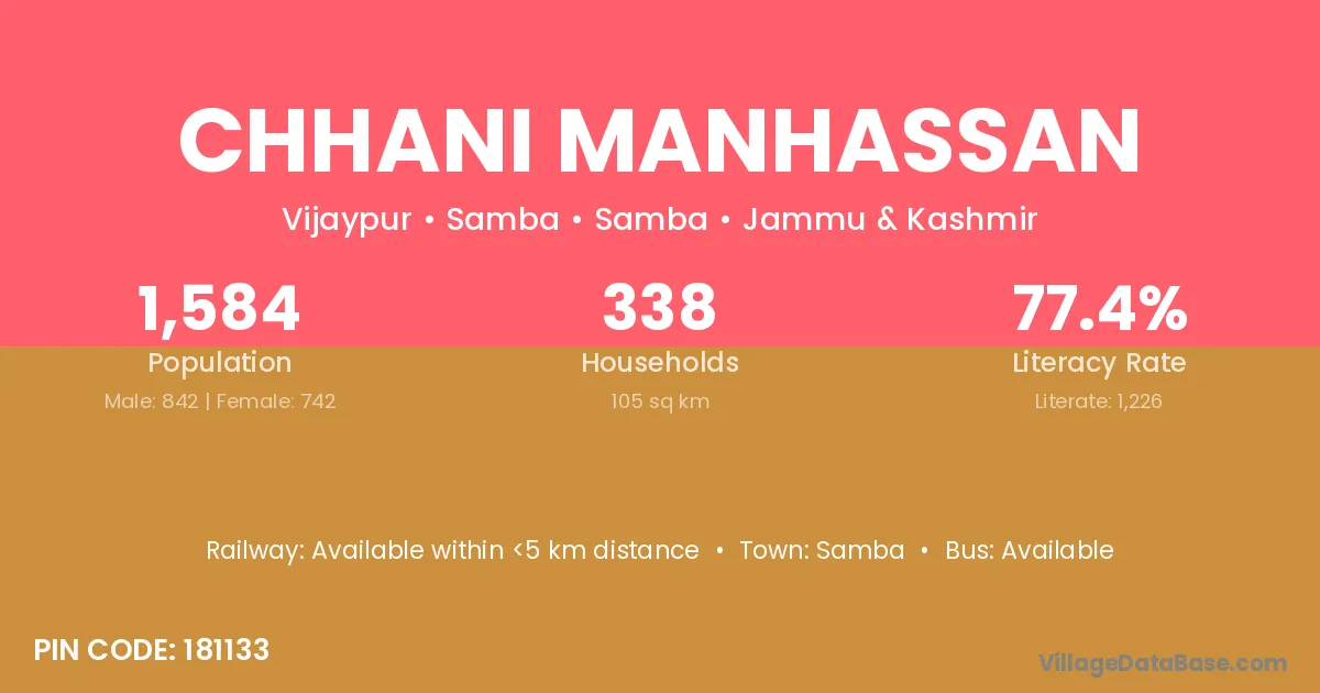 Samba is the nearest town to Chhani Manhassan village for major economic activities
