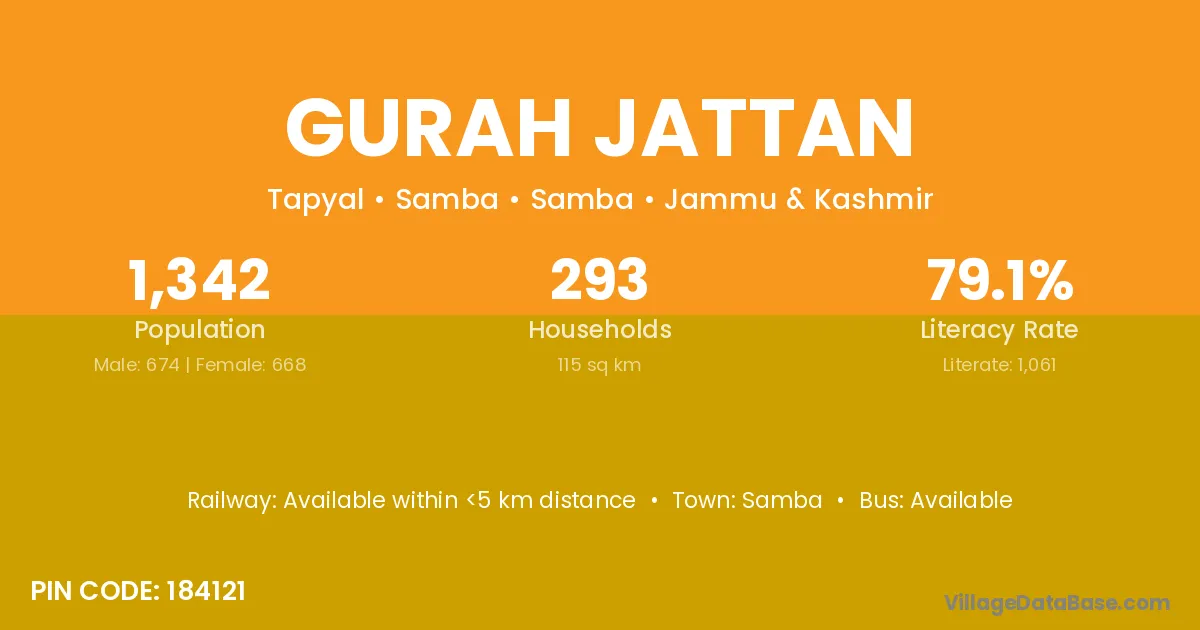 Gurah Jattan village has a total population of 1,342 people, of which 674 are males and 668 are females.