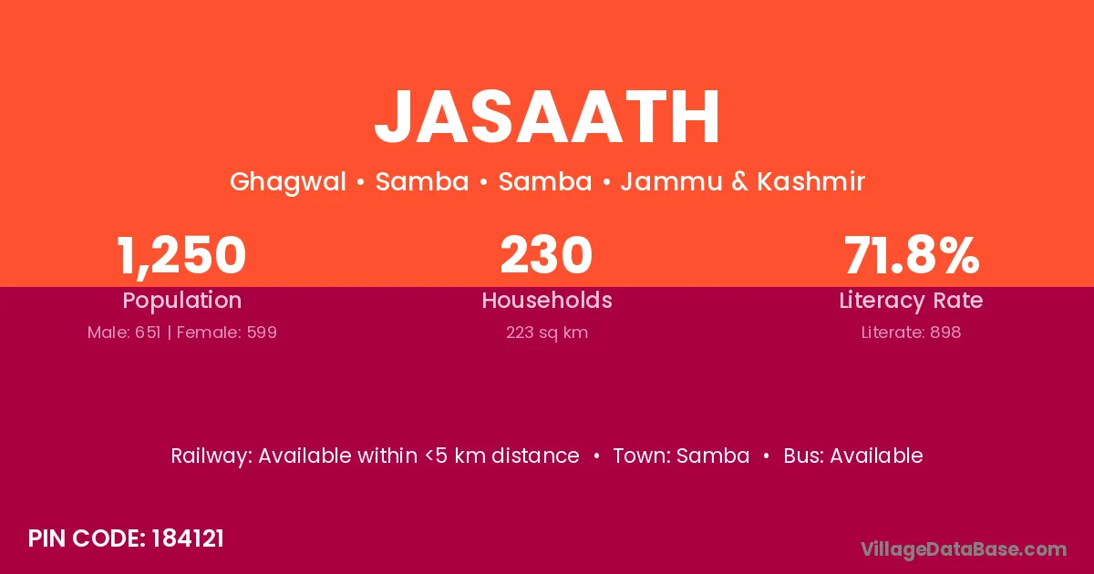 According to Census 2011 information, the village code of Jasaath village is 184121.
