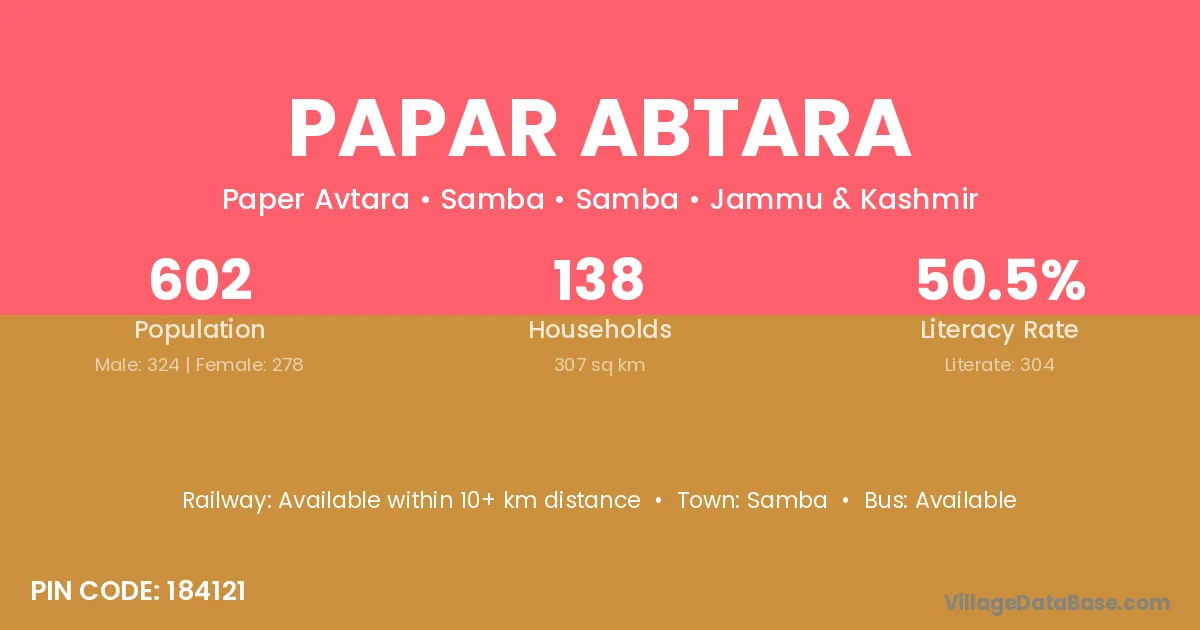 According to Census 2011 information, the village code of Papar Abtara village is 184121.