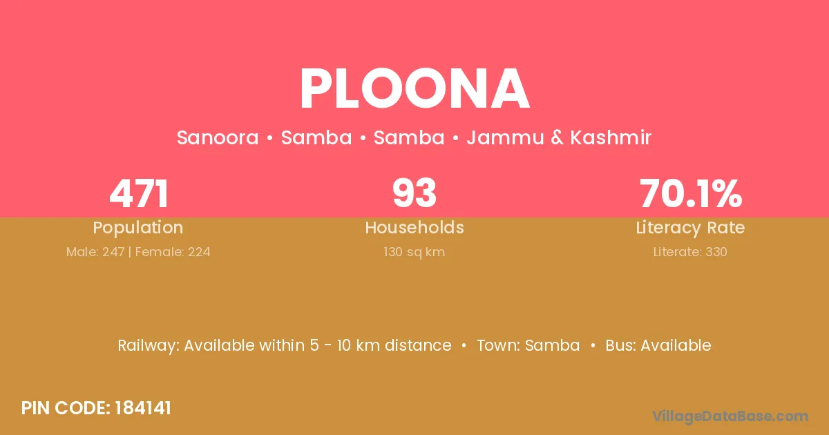 Ploona village has a total population of 471 people, of which 247 are males and 224 are females.