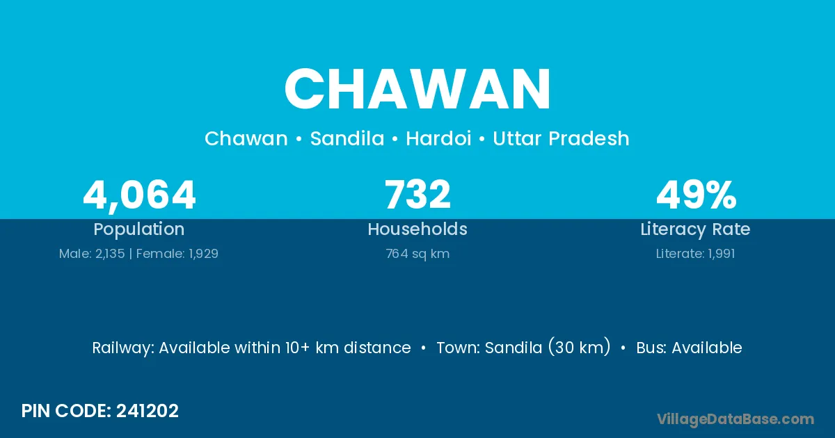 Chawan village has a total population of 1,996 people, of which 1,047 are males and 949 are females.