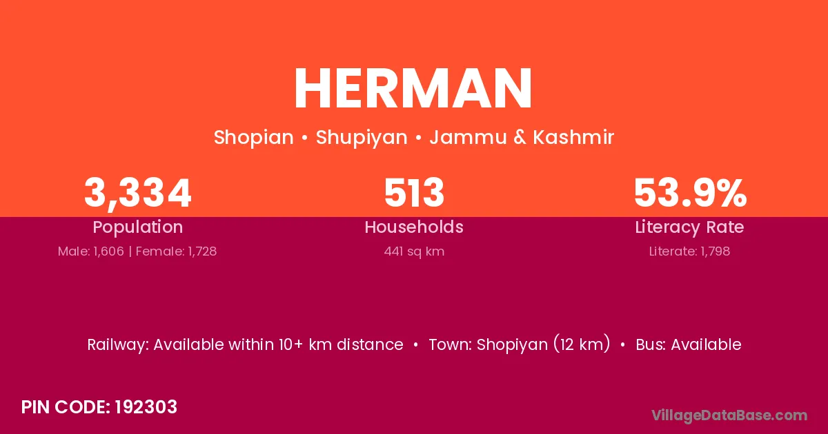 Shopiyan (12 km) is the nearest town to Herman village for major economic activities and is located approximately 12 km away.