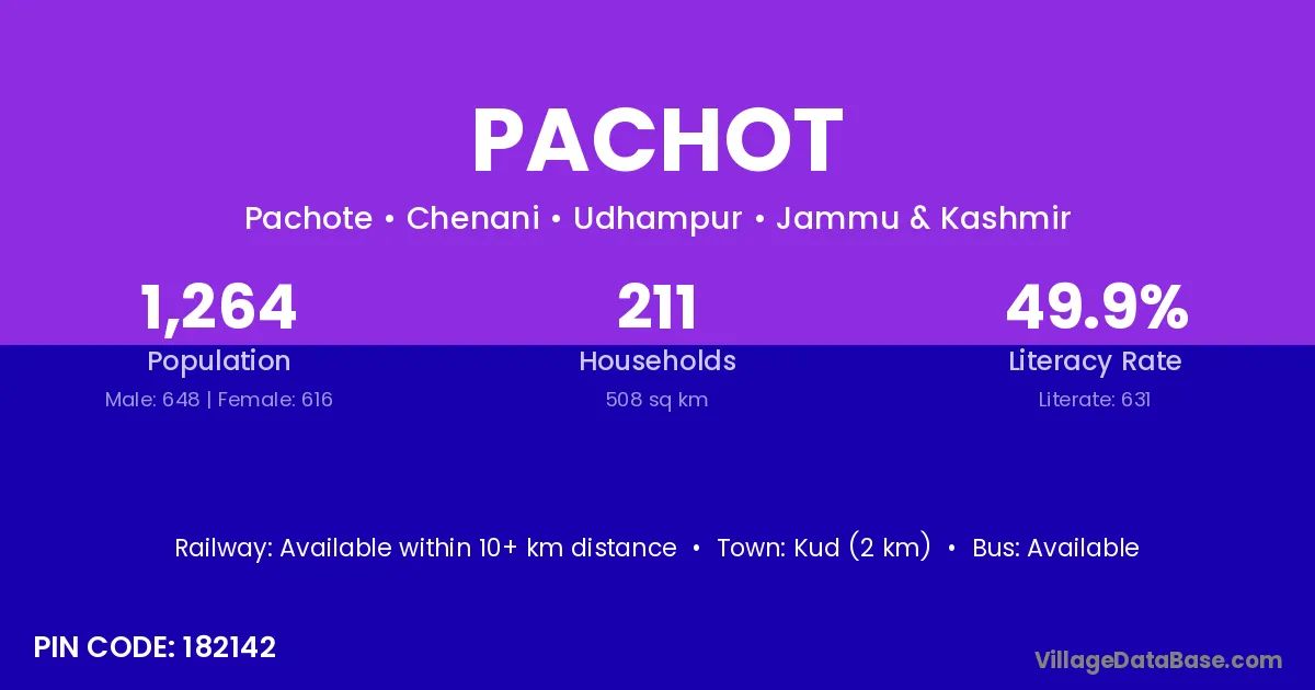 According to Census 2011 information, the village code of Pachot village is 182142.