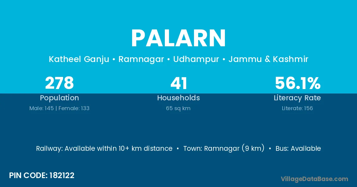Ramnagar (9 km) is the nearest town to Palarn village for major economic activities and is located approximately 9 km away.