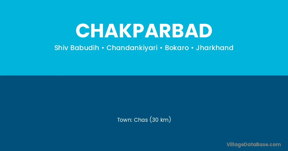 Chas (30 km) is the nearest town to Chakparbad village for major economic activities and is located approximately 30 km away.