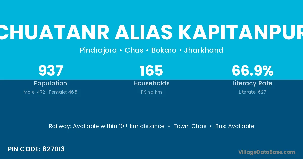 Chuatanr Alias Kapitanpur village has a total population of 937 people, of which 472 are males and 465 are females.