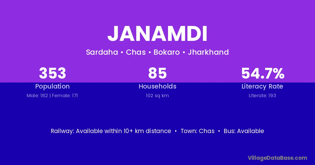 Janamdi village has a total population of 353 people, of which 182 are males and 171 are females.