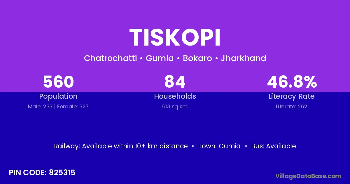 According to Census 2011 information, the village code of Tiskopi village is 825315.
