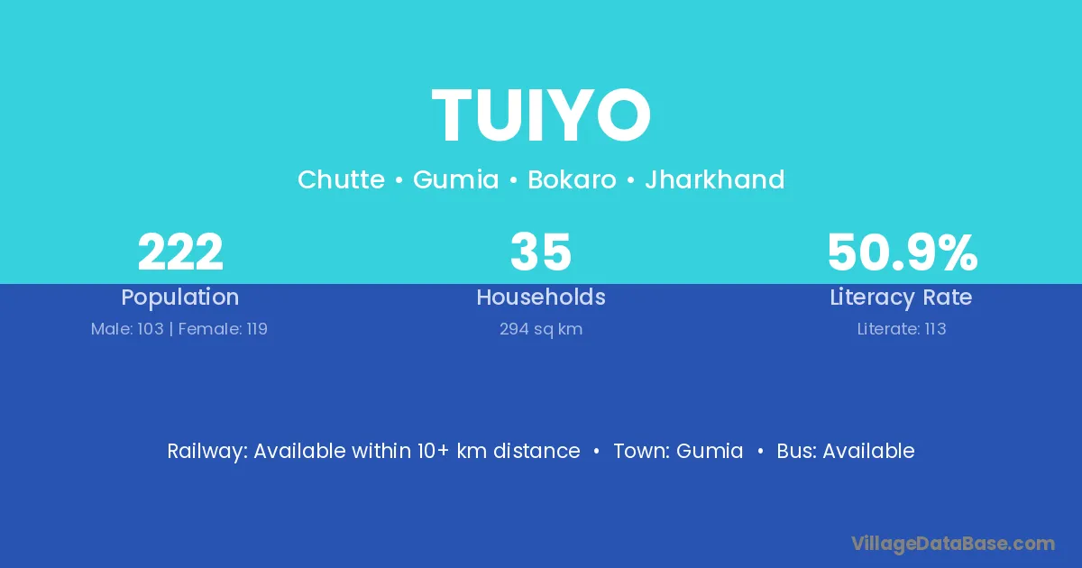 Tuiyo village is located in the Gumia Subdivision of the Bokaro district in Jharkhand .