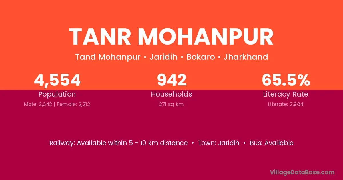 Jaridih is the nearest town to Tanr Mohanpur village for major economic activities