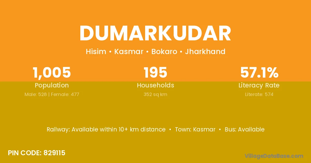 Kasmar is the nearest town to Dumarkudar village for major economic activities