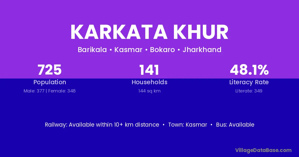 Karkata Khur village has a total population of 725 people, of which 377 are males and 348 are females.