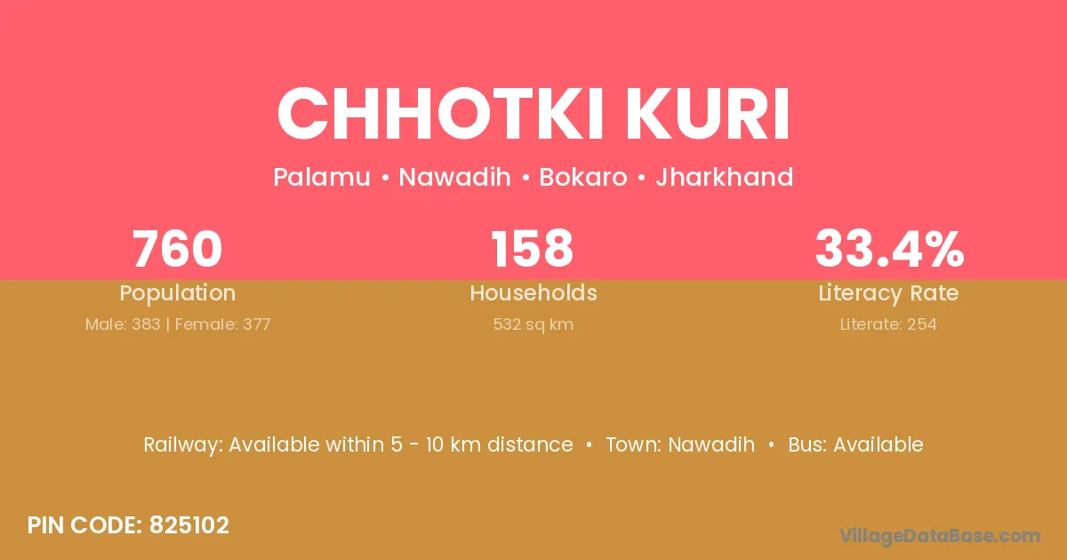Chhotki Kuri village has a total population of 760 people, of which 383 are males and 377 are females.