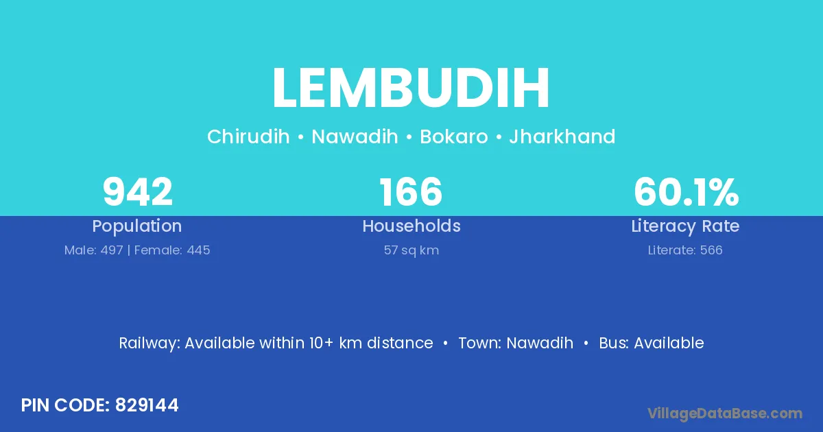 Nawadih is the nearest town to Lembudih village for major economic activities