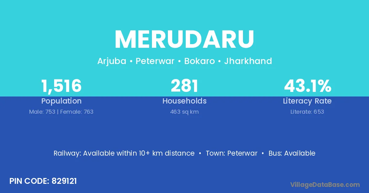 Merudaru village has a total population of 1,516 people, of which 753 are males and 763 are females.