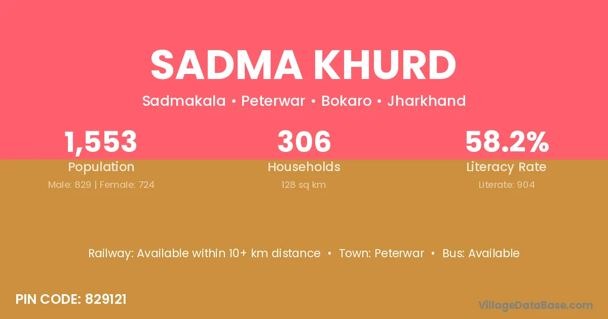 According to Census 2011 information, the village code of Sadma Khurd village is 829121.