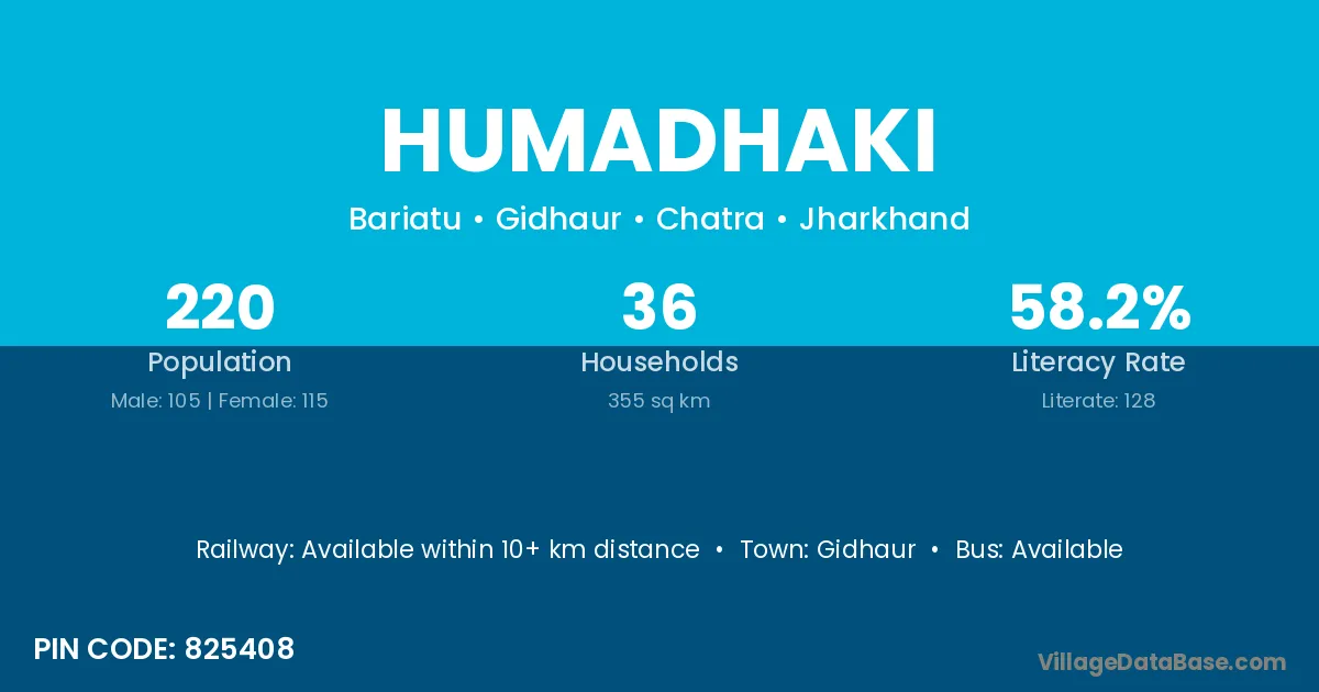 Gidhaur is the nearest town to Humadhaki village for major economic activities