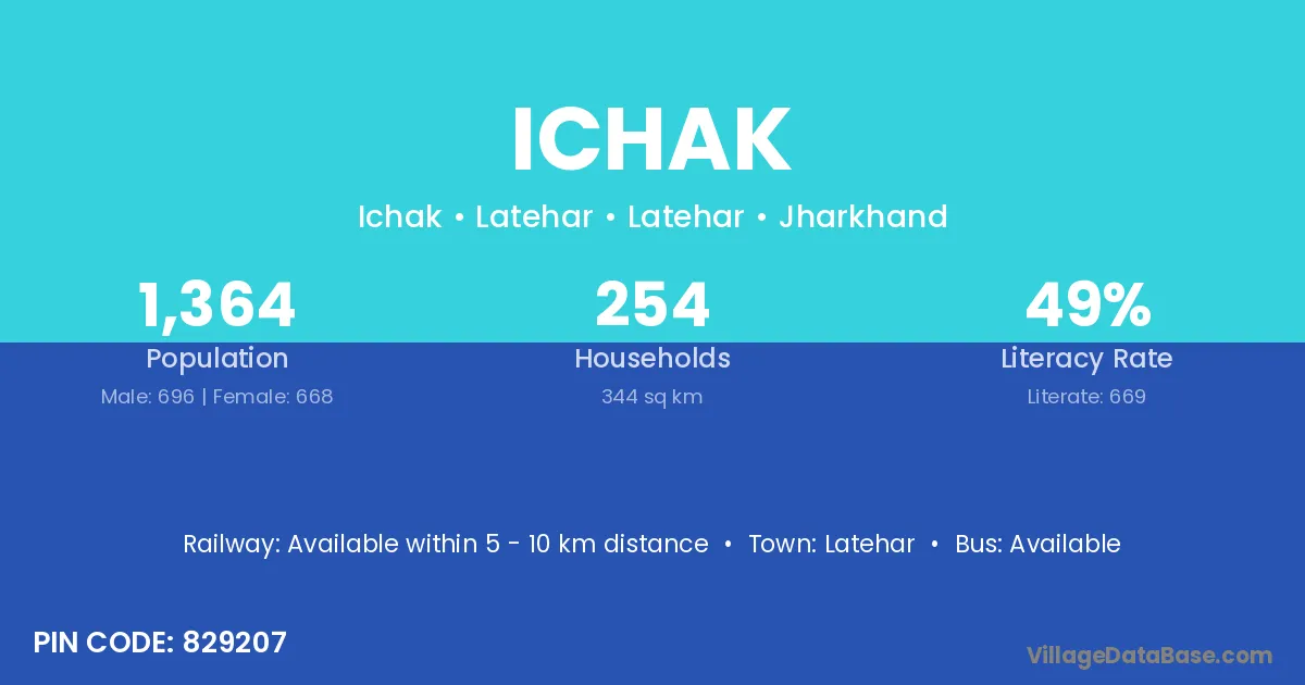 Ichak village has a total population of 1,273 people, of which 664 are males and 609 are females.