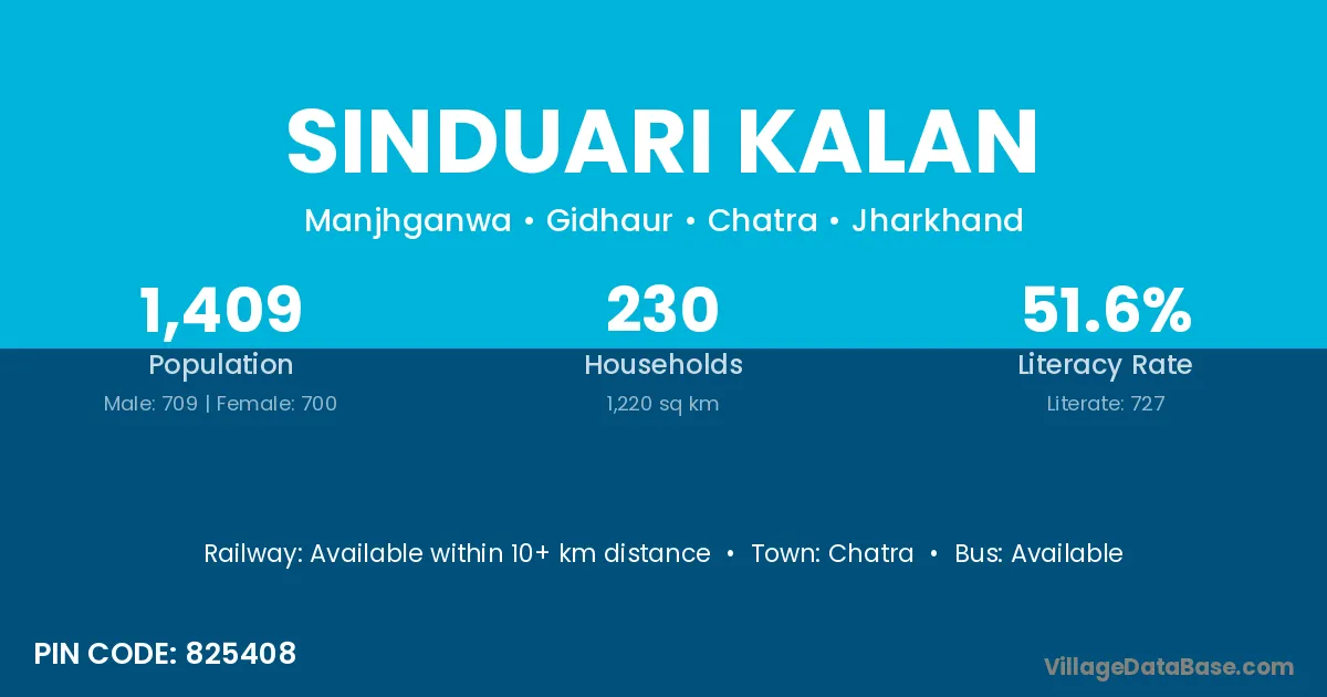 Chatra is the nearest town to Sinduari Kalan village for major economic activities