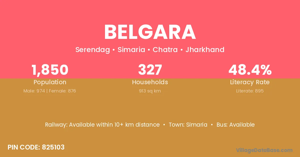 The literacy rate of Belgara village is 41.32%. Male literacy stands at 38.89% and female literacy at 43.28%.