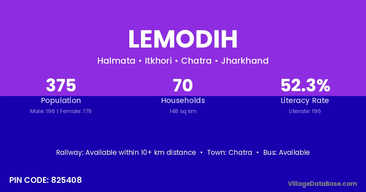 Chatra is the nearest town to Lemodih village for major economic activities