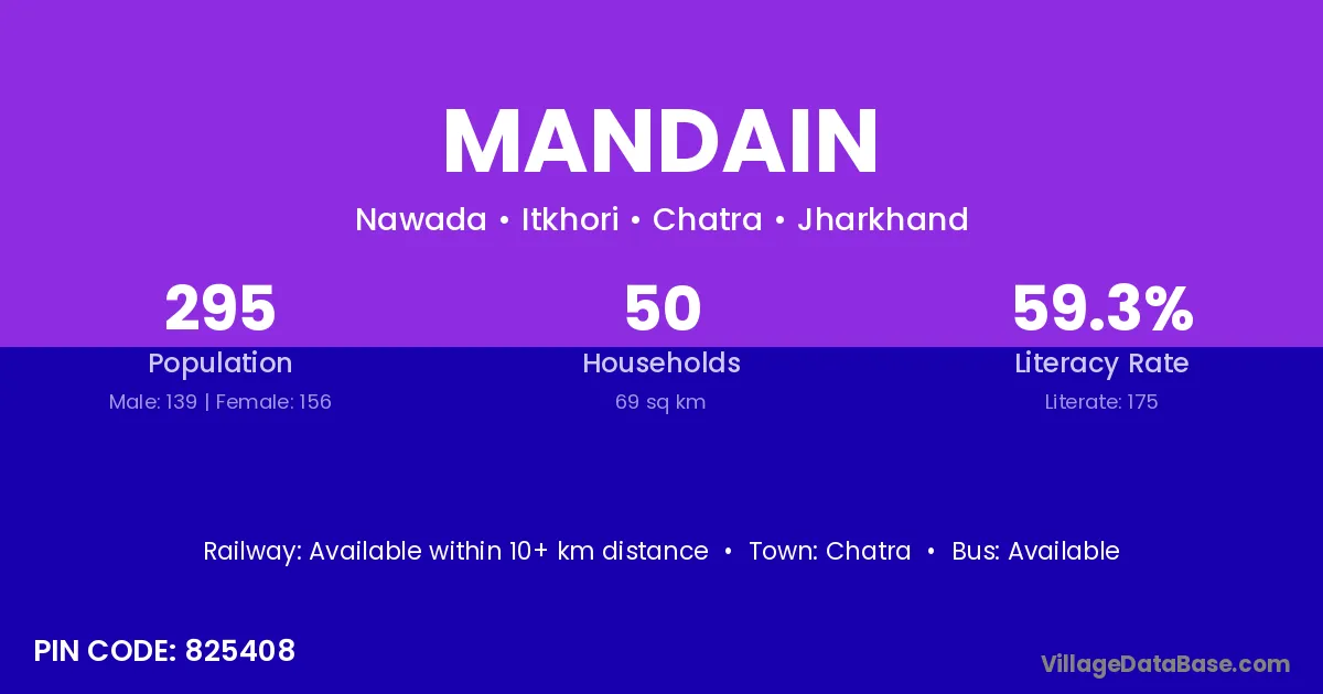 According to Census 2011 information, the village code of Mandain village is 825408.
