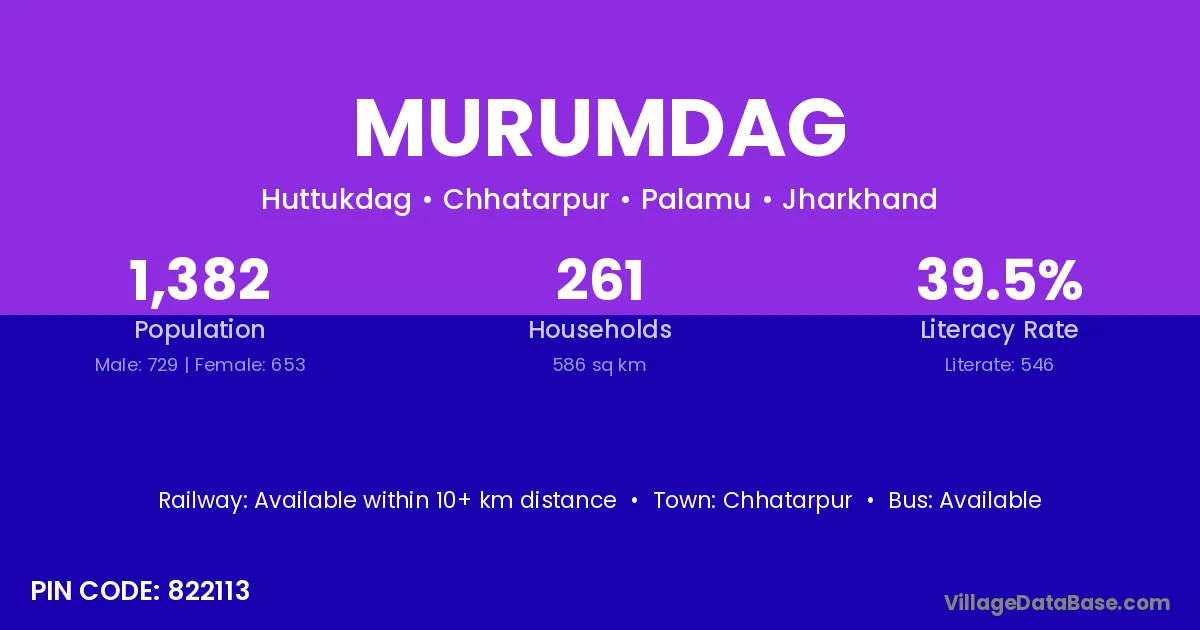 The literacy rate of Murumdag village is 50.97%. Male literacy stands at 61.36% and female literacy at 40.00%.