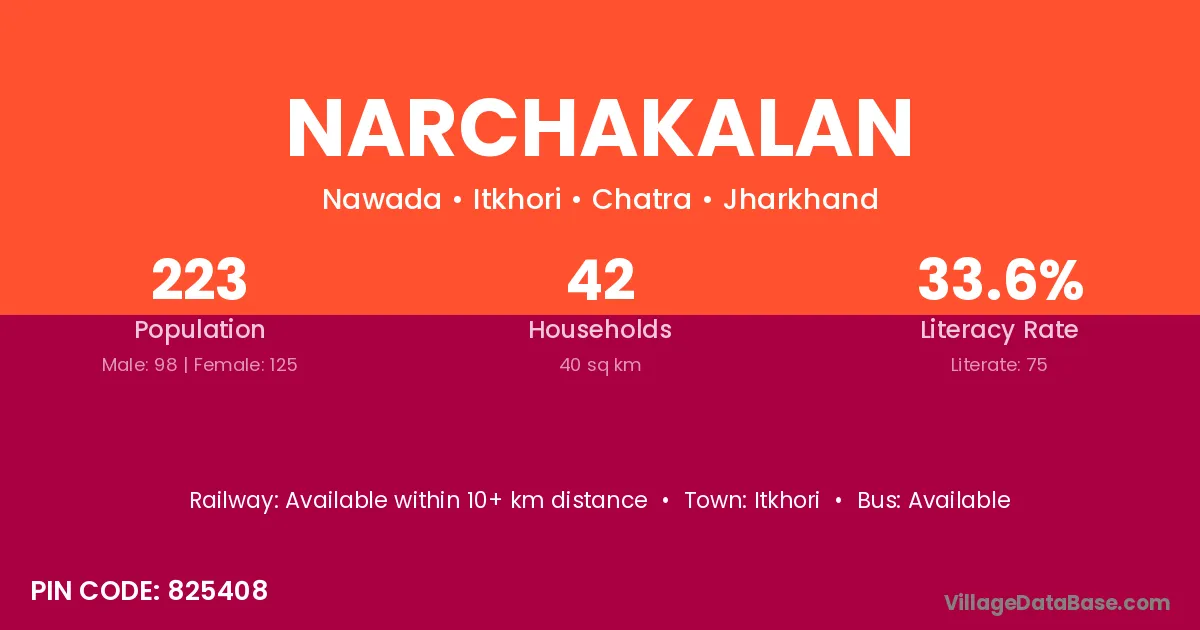 Narchakalan village has a total population of 223 people, of which 98 are males and 125 are females.
