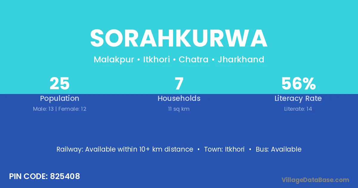 Sorahkurwa village has a total population of 25 people, of which 13 are males and 12 are females.