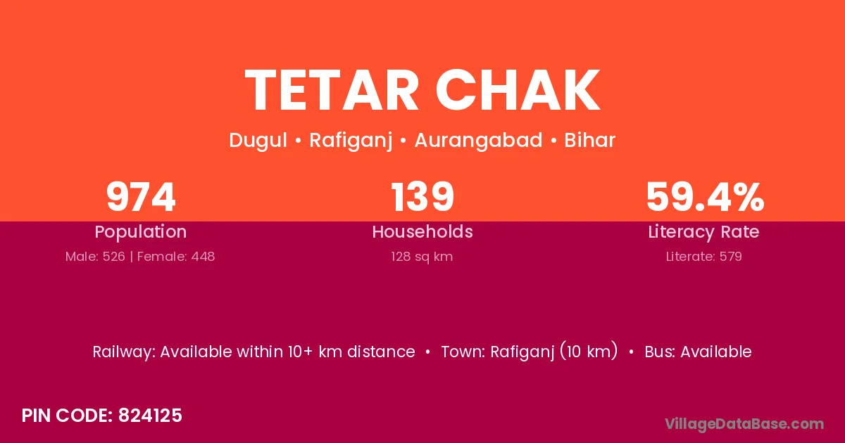 According to Census 2011 information, the village code of Tetar Chak village is 825408.