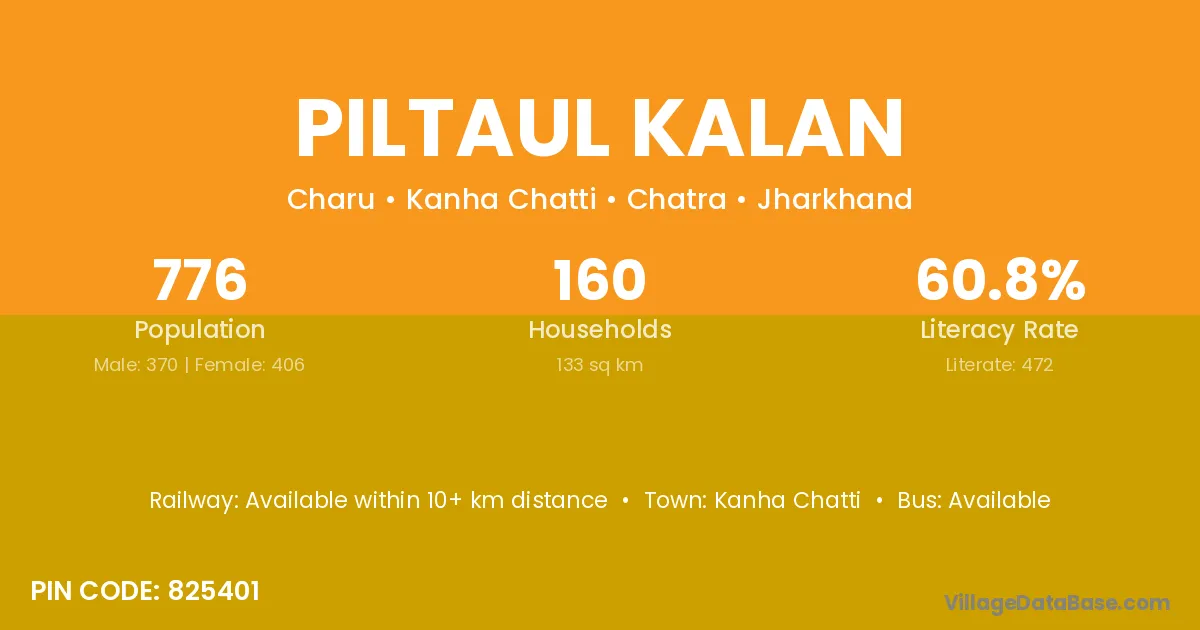 Piltaul Kalan village has a total population of 776 people, of which 370 are males and 406 are females.