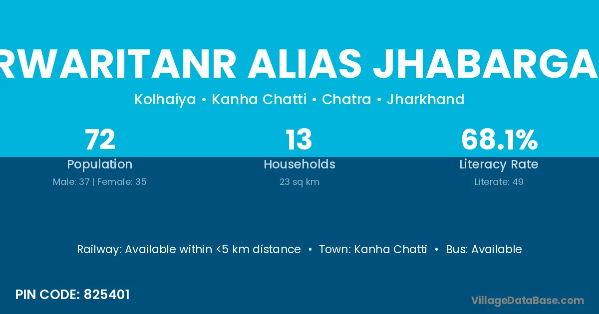 Terwaritanr Alias Jhabargarh village has a total population of 72 people, of which 37 are males and 35 are females.
