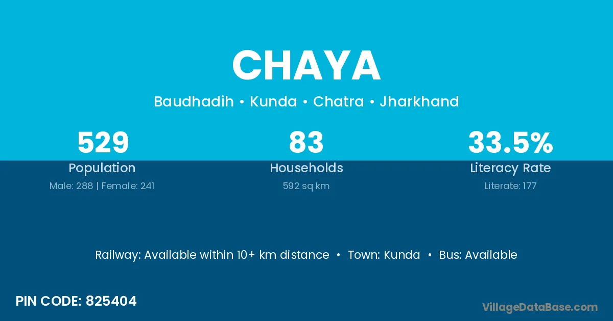 According to Census 2011 information, the village code of Chaya village is 825404.