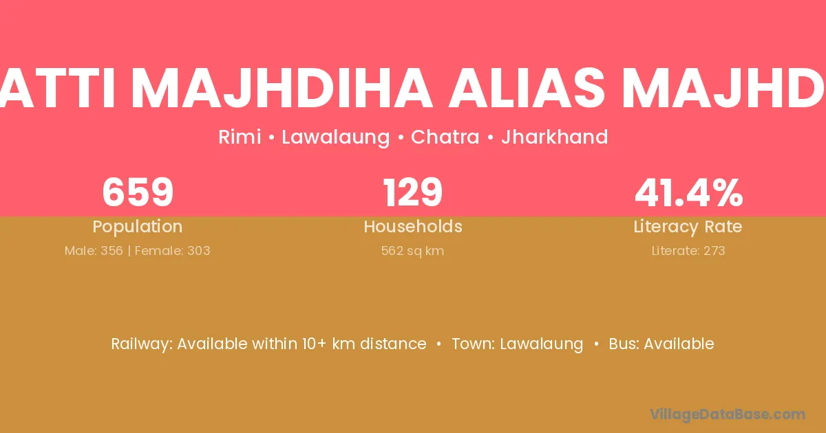 Matti Majhdiha Alias Majhdih village has a total population of 659 people, of which 356 are males and 303 are females.