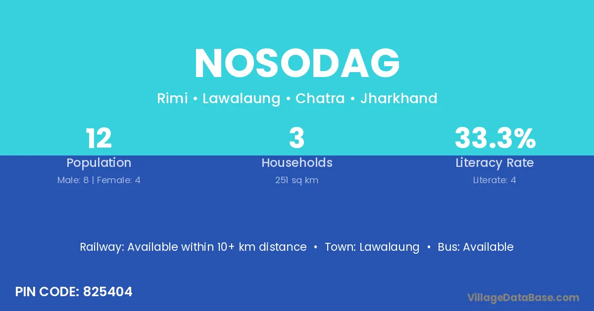 Nosodag village has a total population of 12 people, of which 8 are males and 4 are females.