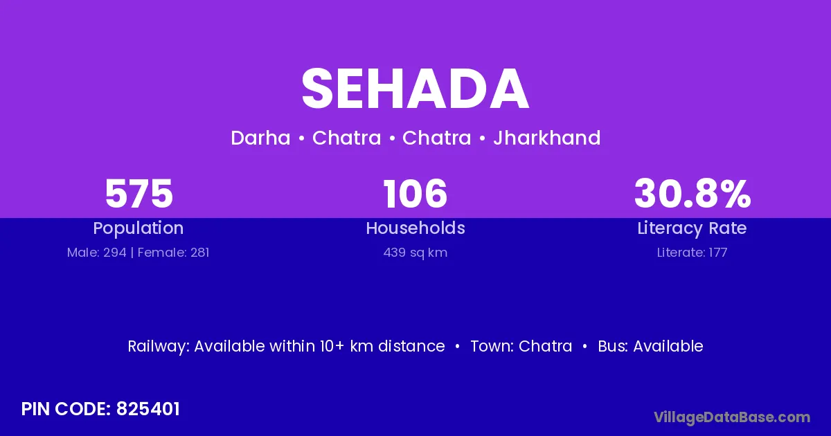 According to Census 2011 information, the village code of Sehada village is 825404.